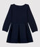 • Abito bambina a maniche lunghe in cotone e tubique blu SMOKING