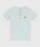 - Nuova vestibilità della t-shirt essenziale: volume boxy e apertura alla tunisina con bottoni.