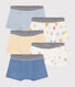 Set di 5 boxer in tessuto a costine, il materiale emblematico di Petit Bateau, morbido e confortevole.