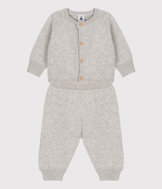 • Completo 2 pezzi bebè in maglia di lana e cotone grigio BELUGA CHINE
