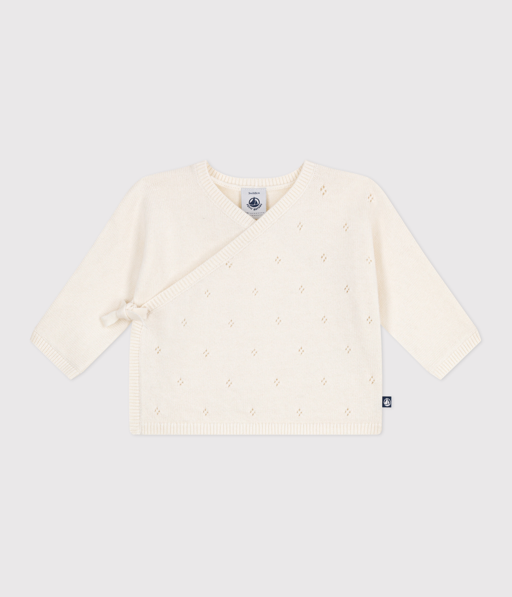 Brassière con incrocio in maglia traforata di misto lana e cotone neonato