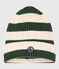 - Cappellino in maglia di cotone biologico con fodera in micropile, per tenere caldo. Disponibile in 2 colori