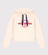 - Taglio corto e leggermente oversize, maniche larghe e spalle scese, cappuccio grande e comodo.