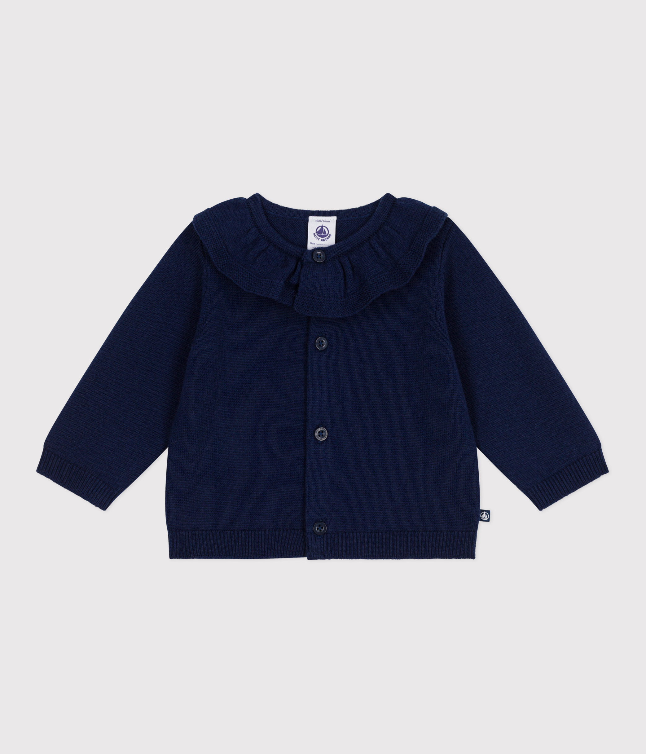 Cardigan in maglia di misto lana e cotone tinta unita con colletto neonato